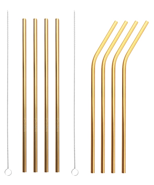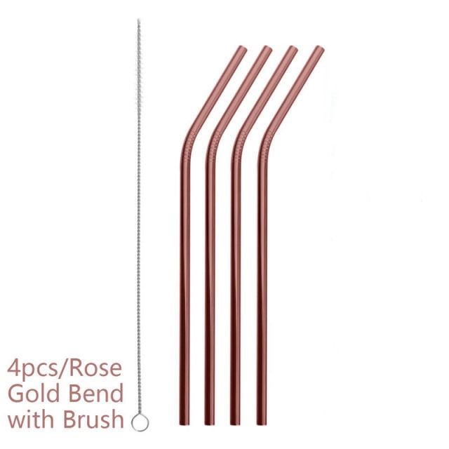 8Pcs Stainless Steel Straw + 2 Pcs Brush for 1 Set
