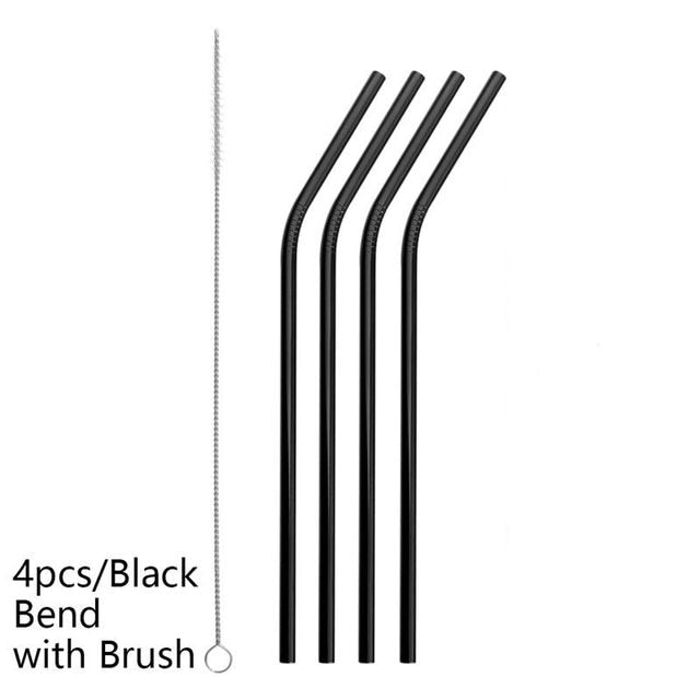 4 Pcs Stainless Steel Straw + 1 Pcs Brush for 1 Set